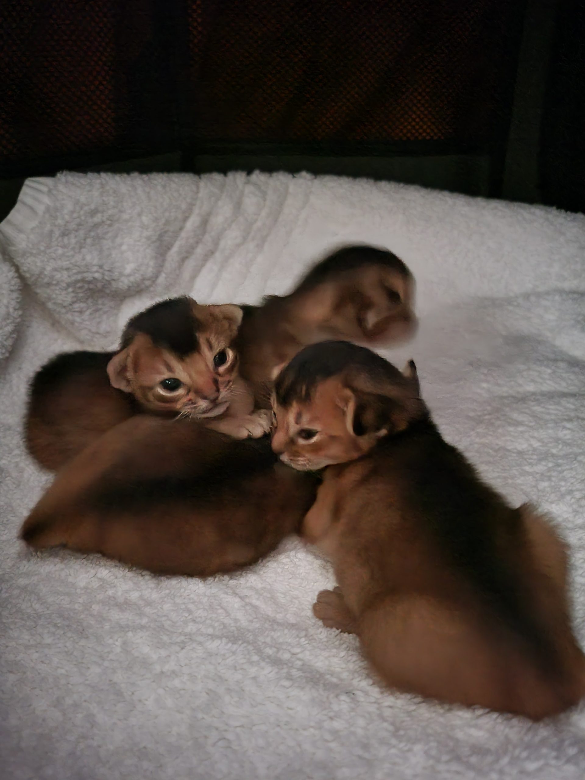Sont les heureux parents de ces 4 adorables abyssins nés le 1er Novembre 2025.