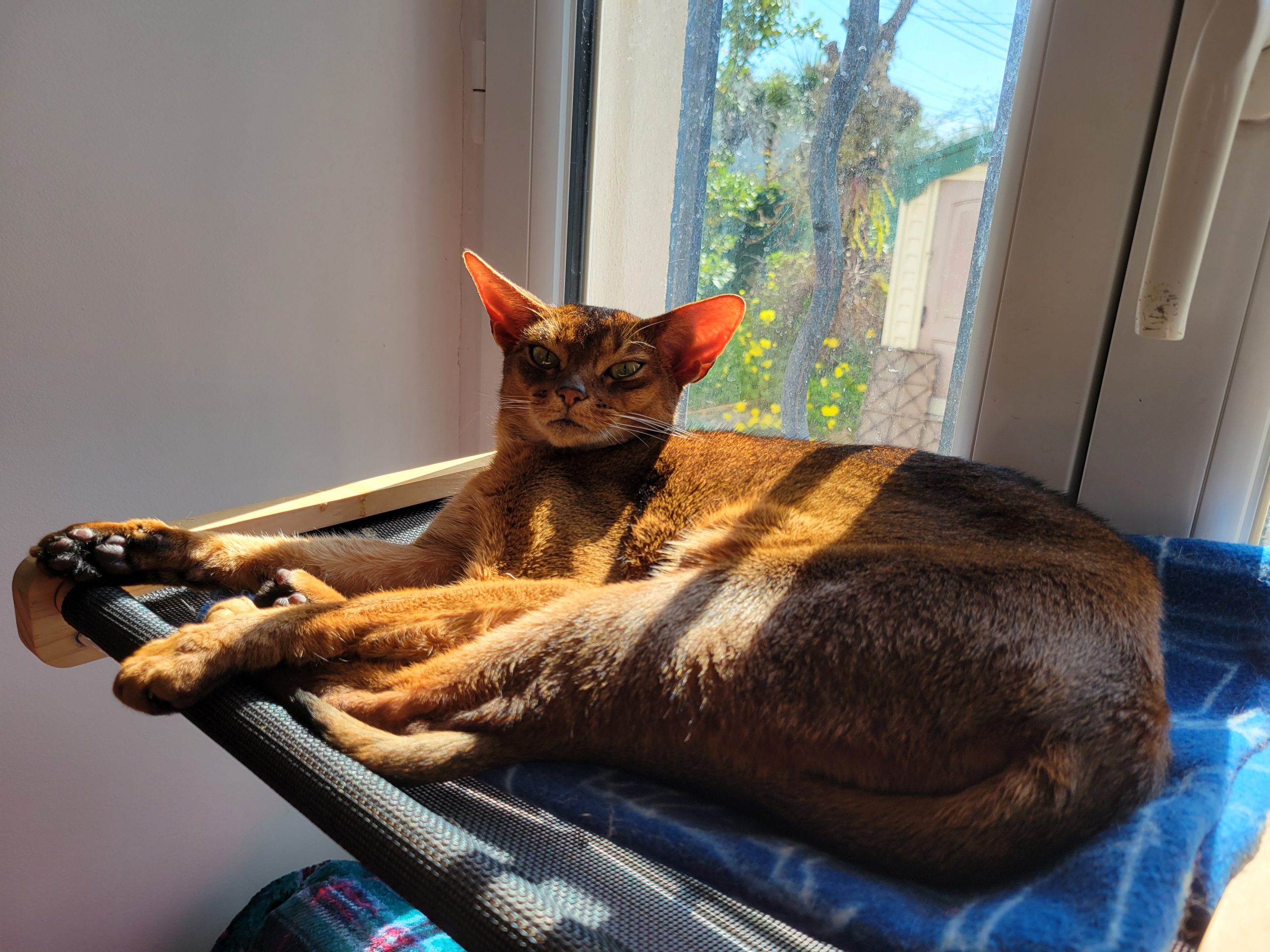 Elle est porteuse de dilution, ce qui nous permet, selon les mariages, d’avoir des chatons dans les 4 couleurs traditionnelles que sont le Lièvre, le Sorrel, le bleu et le fawn.